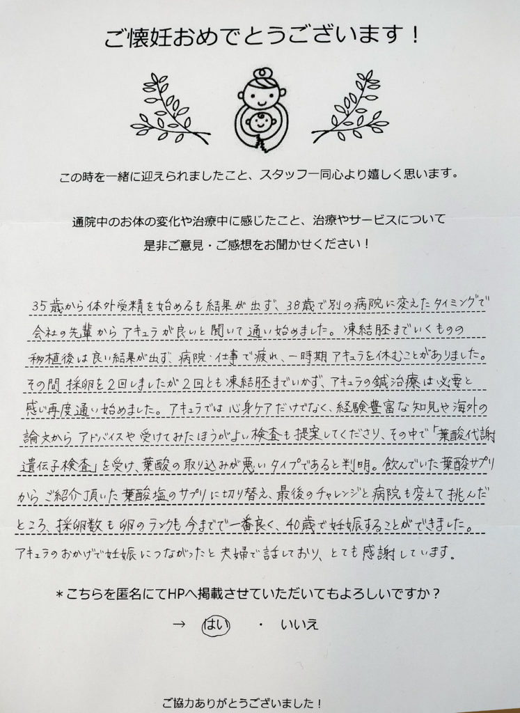 【妊娠報告】43歳 Y・Iさま
