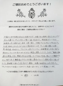 アキュラのおかげで妊娠につながったと夫婦で話しており、とても感謝しています。